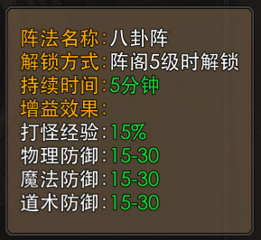 2. 成功激活一次阵法,全行会成员即可享受高收益经验Buff,助力角色升级。